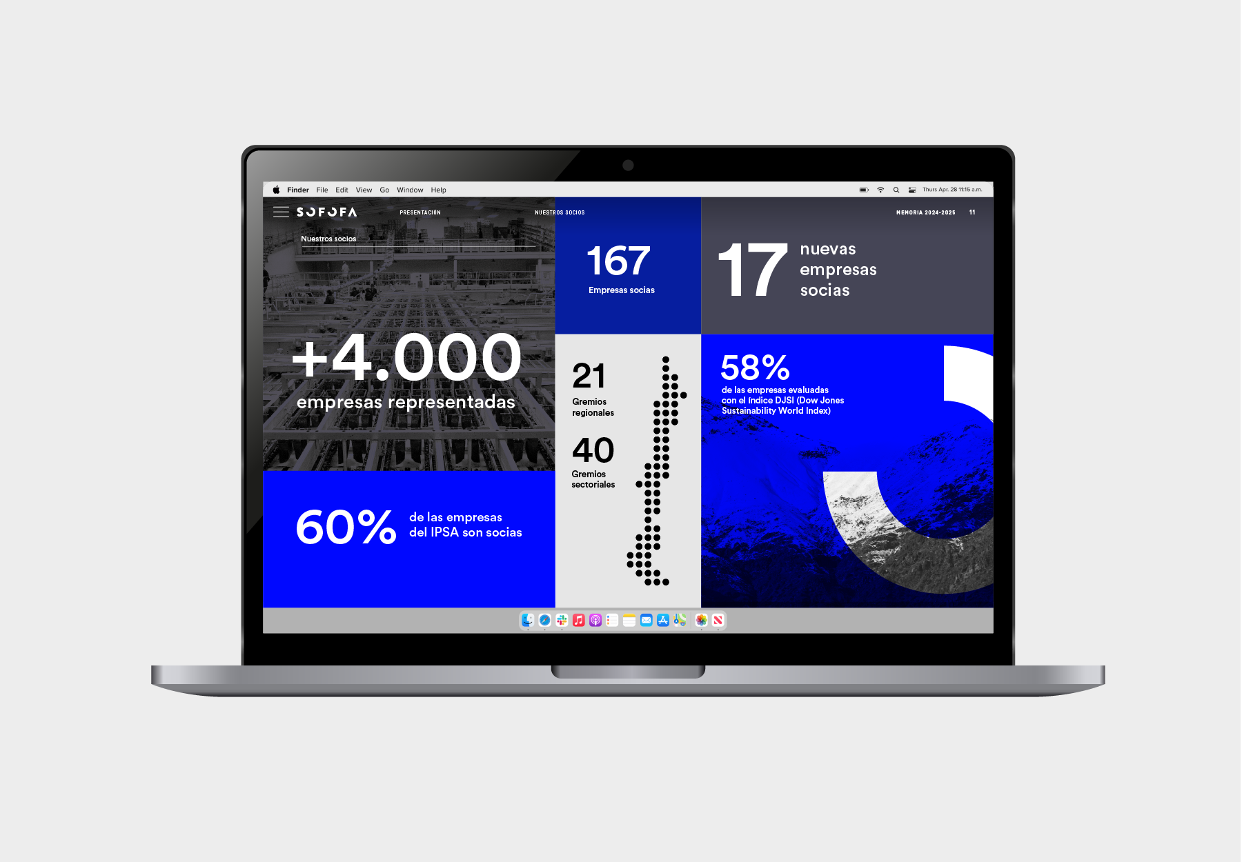 La memoria SOFOFA 2024–2025 fue concebida para reflejar el intenso quehacer del gremio y de sus empresas socias. Participamos en la elaboración integral del reporte, desde el concepto central, la escritura y la edición hasta el diseño visual.